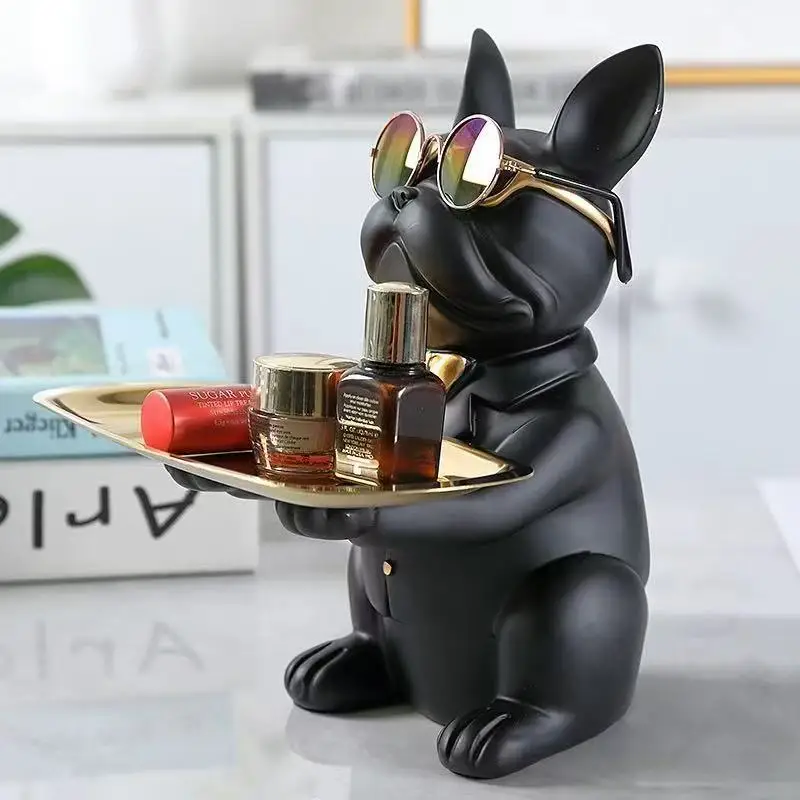 This bulldog decorative tray adds charm and personality to any space. Its detailed design captures the playful essence of the bulldog. Perfect for holding keys, jewelry, or small decorative items. Made from durable materials to ensure long-lasting use. Ideal as a tabletop accent in living rooms, bedrooms, or entryways. The tray also serves as a stylish gift for dog lovers. Compact and versatile, it fits easily on shelves, desks, or counters. Adds a whimsical yet elegant touch to home décor. Easy to clean and maintain while retaining its aesthetic appeal. A functional and decorative piece that blends practicality with charm.