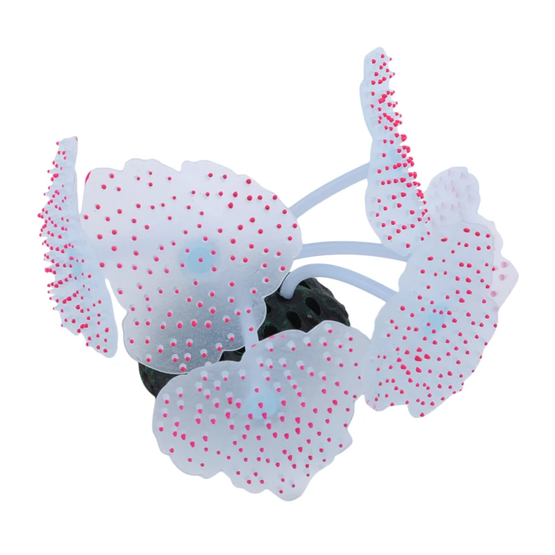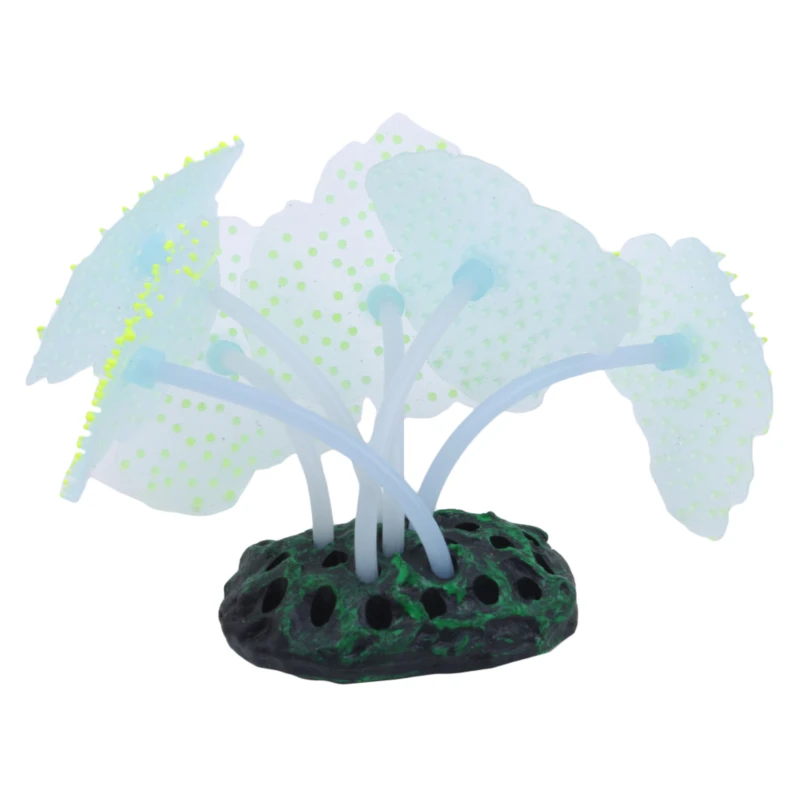Simulation aquarium decorations made from luminous silicone. Fluorescent fake coral and colorful sea anemone designs create a vibrant underwater world effect in fish tanks and aquariums.