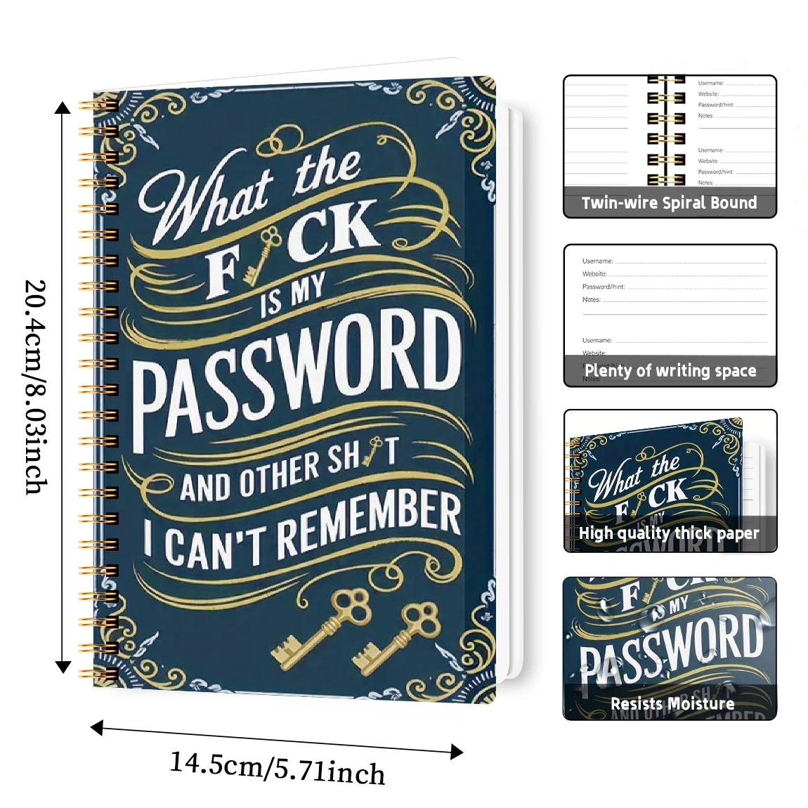 A5 password book for securely organizing internet accounts, website logins, and notes. Perfect password journal for managing cybersecurity, keeping login information safe, and staying organized.