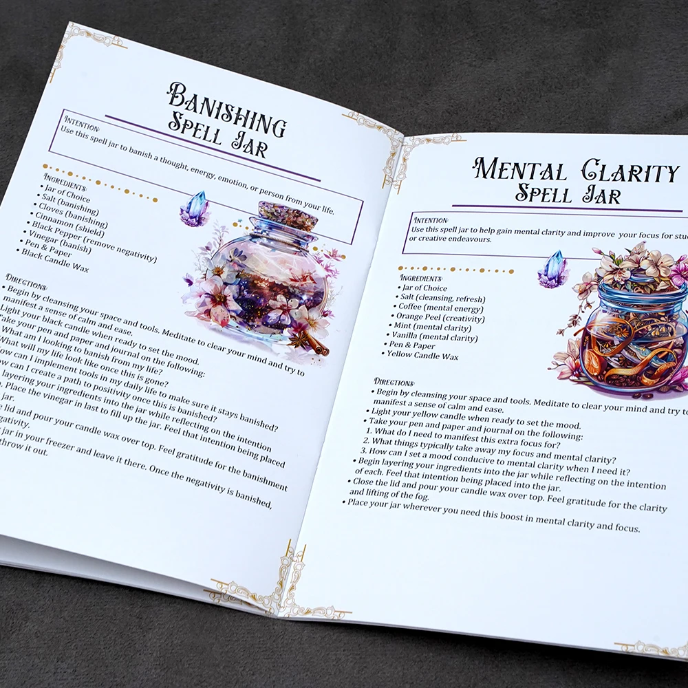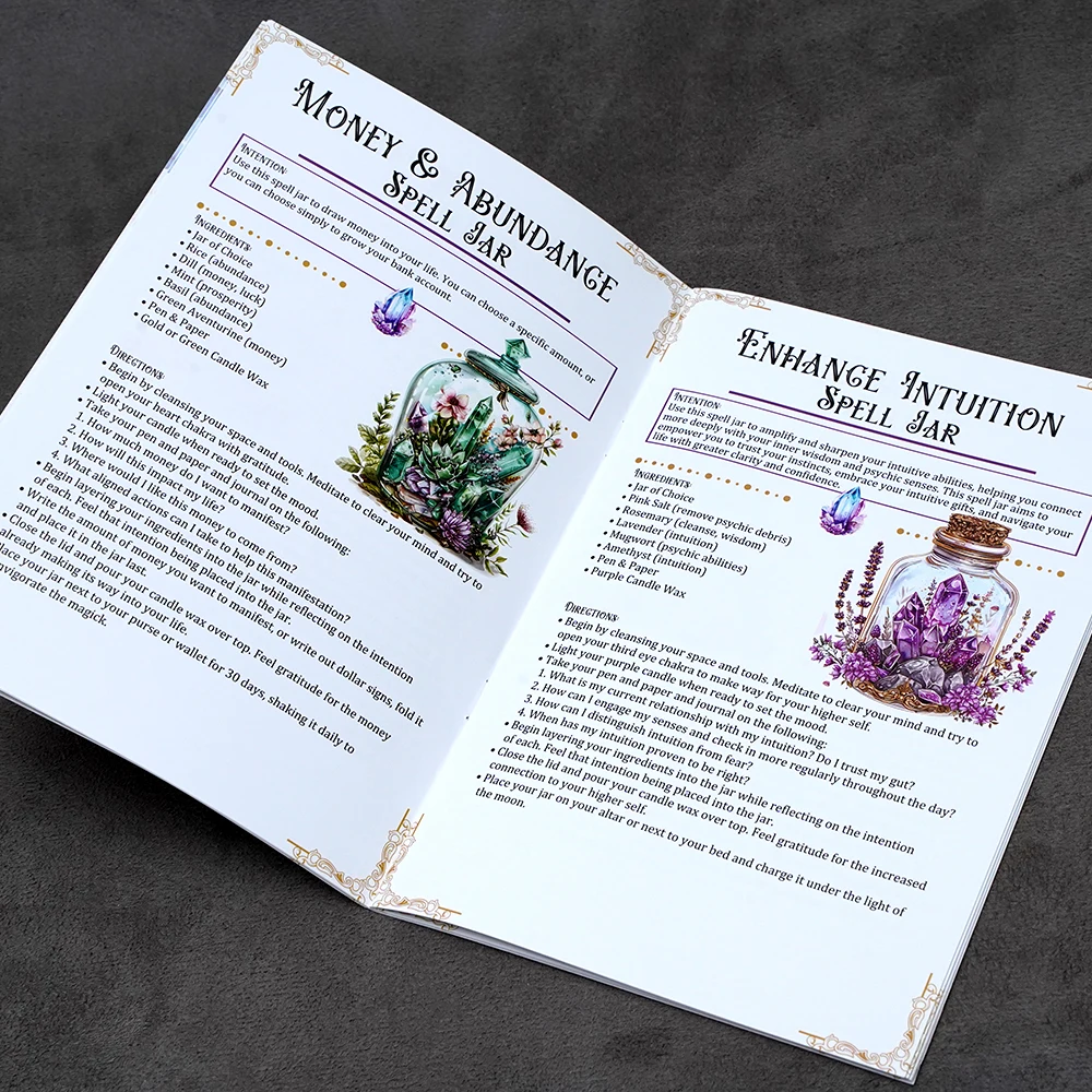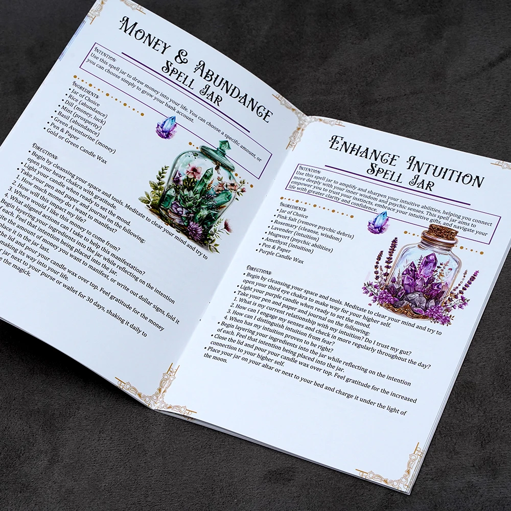 27-page Spell Jars Guide Book for beginners. Illustrated instructions for creating jar spells, performing rituals, and using magical herbs. Ideal for learning witchcraft, practicing magic, or gifting to aspiring practitioners.
